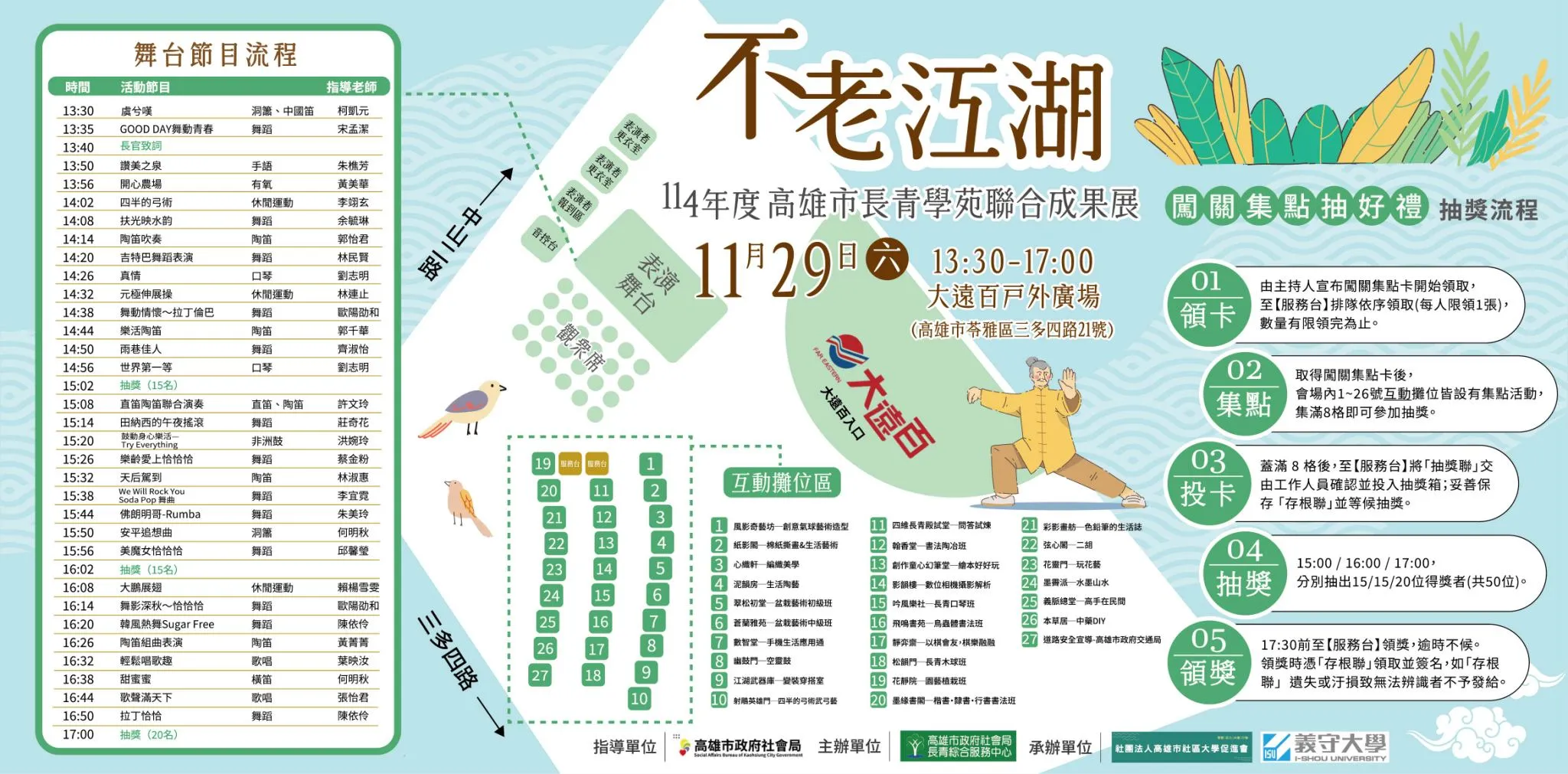 114年高雄市長青學苑聯合成果展日期:114年11月29日(六)時間:下午1:30至5:00