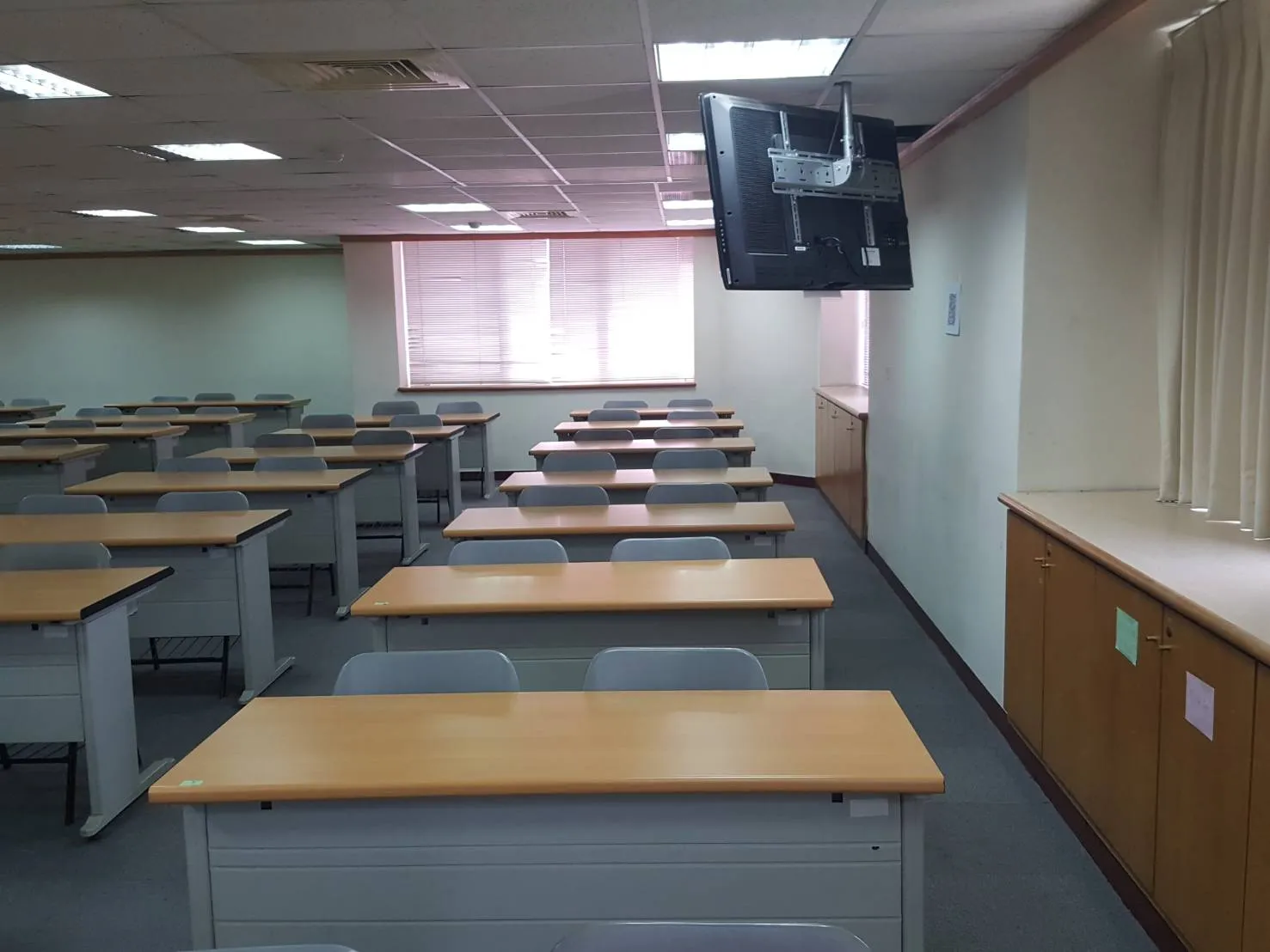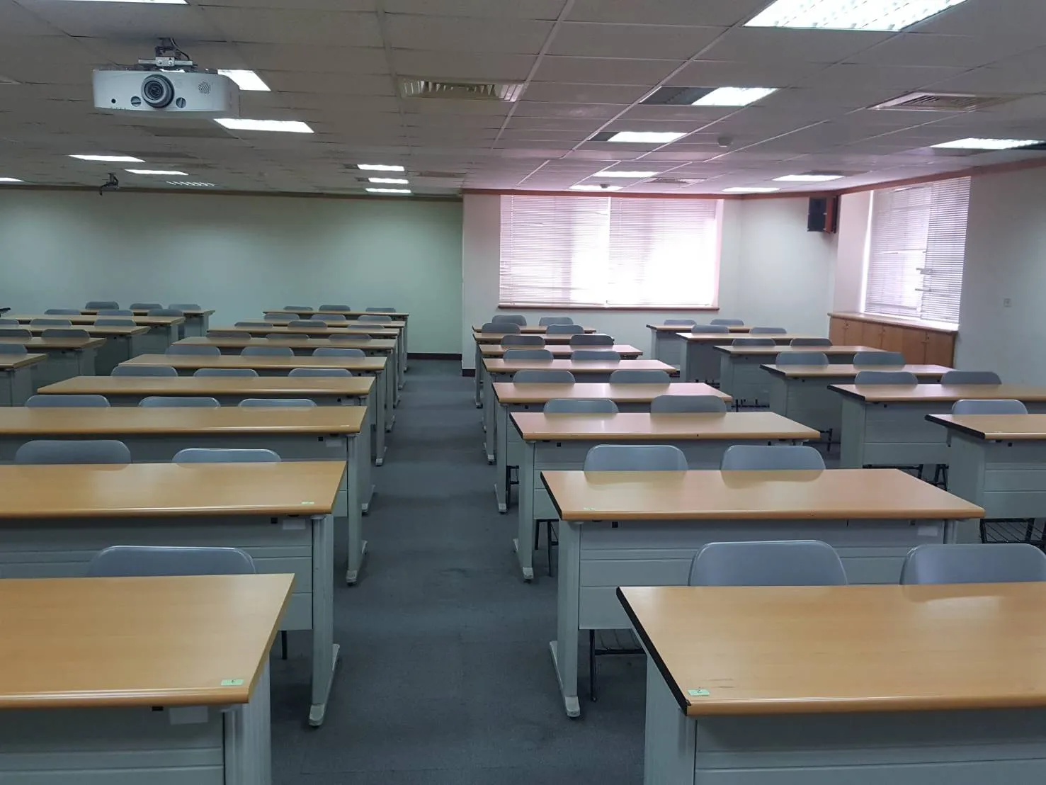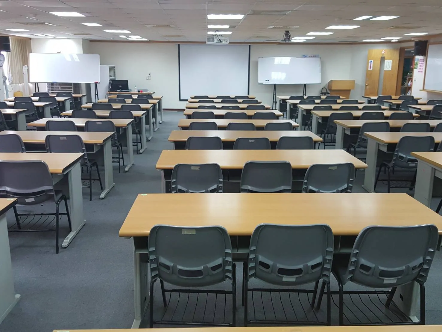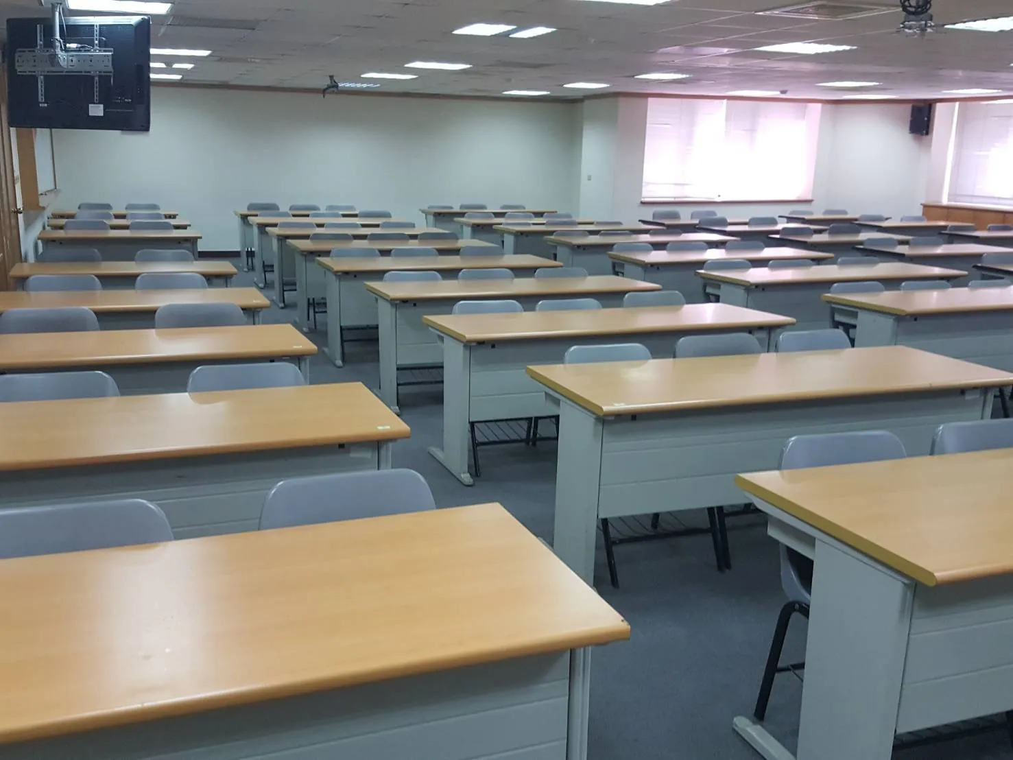 教室環境教室型態 - 大型教室教室空間可容納人數70~100人。 ▼教室型態: 上課型 設備說明電腦設備:教師電腦*1 單槍設備:投影布幕*1、投影單槍*1、液晶電視*2 音響設備:擴音設備*1、喇叭*4、無線麥克風*2